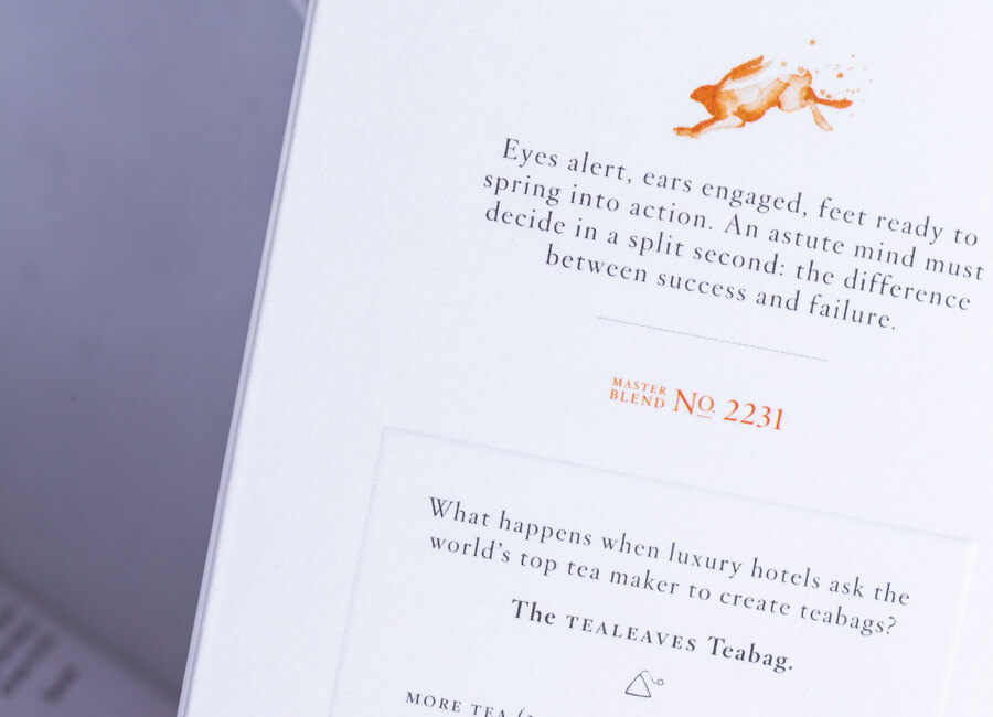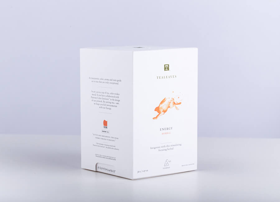 TEALEAVES sought to redesign their Whole Leaf Pyramid Teabag collection, moving away from outdated and cluttered packaging to a more modern, minimalist look. This marked the company’s first collaboration with the Pantone Color Institute which selected ten new colors for each tea. TEALEAVES assigned a mood to help bring out the story of each tea. Taking inspired from both the colour and the mood, a watercoloured illustrations of animals representing the essence of each tea.